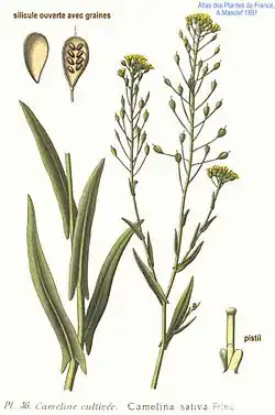 - ↑ AL-SHEHBAZ, Ihsan A.; YATSKIEVYCH. Projects Brassicaceae: Camelina sativa [online]. Tropicos.org, Missouri Botanic Garden, St. Louis, MO, USA, rev. 26.08.2009 [cit. 2013-02-19]. Dostupné online. (anglicky)