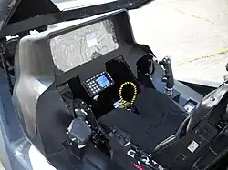 Aby se minimalizoval reakční čas pilota při náročných bojových podmínkách, v kokpitu je využit koncept HOTAS (Hands-On-Throttle-And-Stick), tj. nejdůležitější ovládací prvky jsou umístěny na plynové a řídicí páce.