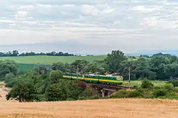 ![]() Lokomotiva 125.802+801 ve výhybně Slančík | |