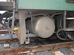 Za smetadlem je v každém čele lokomotivy zavěšen jeden vzduchojem o objemu 450 litrů a dovoleném tlaku 10 barů (tj. 106 Pa).