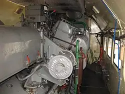 První dodané lokomotivy nebyly vybaveny dostatečným tlumičem výfuku. Hluk spalovacího motoru (SM) bylo slyšet až několik kilometrů od trati. Nový tlumič byl dosazen až od 113. vyrobeného kusu a výkon motoru tak poklesl o cca 50 koní (z 2 000 k na 1 950 k). SM je přeplňován třemi dmychadly, z toho dvě postranní jsou poháněná výfukovými plyny (turbodmychadla). Prostřední, poháněné mechanickým převodem od SM, je Rootsova typu („piškotové“) a slouží pro vytvoření přetlaku v karteru při startu SM. Vrtání válců je 230 mm, zdvih pístů 300 mm. Vstřik paliva je přímý, chlazení SM je vodní a zčásti také vzduchové – plnicím vzduchem. Pomaluběžný motor má při zdvihovém objemu 150,6 l jmenovitý výkon 1 470 kW (2 000 k) při 750 ot./min. Přenos výkonu je elektrický stejnosměrný a při volnoběžných otáčkách ukazuje ručka otáčkoměru (je umístěn ve strojovně přímo na motoru) hodnotu 400 ot./min. Motor je hlučný a vykazuje vysokou kouřivost. Stanoviště strojvedoucího bylo ale velmi dobře odhlučněno a vibrace na stanovišti byly minimální. Spotřeba nafty je při porovnání se čtyřdobým SM vyšší. Lokomotiva má nádrž na 3 900 l nafty, spotřeba v provozu dosahuje až 340 l/100 km.