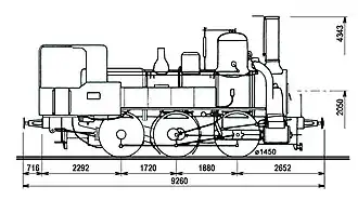 | Uspořádání pojezdu | C m2t (0-6-0T) |
