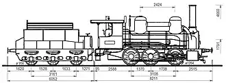 | Uspořádání pojezdu | C m2 (0-6-0) |