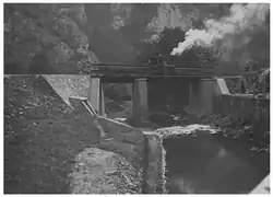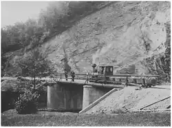 Vytěžený vápenec z lomu Hostim II se přepravoval tzv. drážkou (úzkokolejnou tratí) přes dvojici mostů na dno lomu Hostim I (dochované historické fotografie lomu Hostim I resp. Na Kozle zachycují pohledy na most s drážkou a lokomotivou) a odtud pak putoval lanovkou před Berounku. V roce 1944 byla vybudována úzkorozchodná železniční trať spojující lom Hostim I s Berounem.[7] Zbytky trati jsou v terénu ještě patrny podél cesty do Berouna.[3][p. 4]