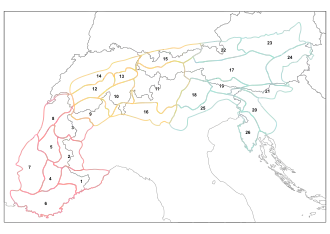 | Sousední jednotky | Penninské Alpy, Lepontské Alpy, Rétské Alpy, Benátské Alpy, Pádská nížina |