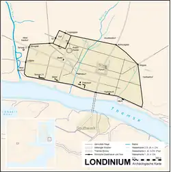 Londinium, nazývané také jako římský Londýn, bylo hlavním městem římské Británie. Většina historiků se domnívá, že město bylo založeno krátce po Claudiově invazi do Británie, na místě dnešní čtvrti City kolem let 47–50.[1][2] Někteří historikové hájí starší názor, že město vzniklo k obraně před touto invazí v roce 43.[3] Nejstarší bezpečně datovanou stavbou je dřevěný odtok z roku 47. Nacházel se u klíčového brodu na řece Temži, který proměnil město v silniční uzel a hlavní přístav (který byl postaven mezi lety 49 a 52). Rané Londinium zabíralo relativně malou plochu 1,4 kilometru čtverečního, což je zhruba polovina rozlohy dnešní City. V roce 60 nebo 61 donutilo povstání Icenů pod vedením jejich královny Boudiccy římské vojsko osadu opustit, ta byla poté srovnána se zemí.