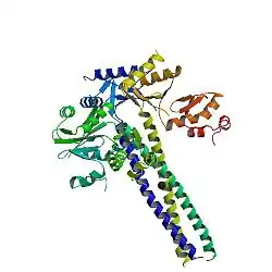 První otevřený čtecí rámec kóduje RNA-vážící protein o délce 500 aminokyselin o molekulové hmotnosti 40 kDa. Tato bílkovina obsahuje motiv leucinového zipu a funguje jako chaperon.[4]