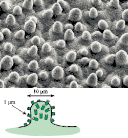 Vysoké povrchové napětí vody způsobuje, že kapky mají téměř kulovitý tvar, protože koule má minimální povrch. Tento tvar proto minimalizuje povrchovou energii pevné látky a kapaliny. Při kontaktu kapaliny s povrchem dochází vlivem adhezních sil ke smáčení povrchu. V závislosti na struktuře povrchu a napětí kapaliny může dojít buď k úplnému, nebo neúplnému smáčení.[4] Příčinou samočisticích vlastností je hydrofobní vodoodpudivá dvojitá struktura povrchu, která umožňuje výrazně snížit kontaktní plochu a adhezní sílu mezi povrchem a kapalinou, což vede k samočisticímu procesu.[5] Tato hierarchická dvojitá struktura je tvořena z charakteristické pokožky (její nejsvrchnější vrstvy zvané kutikula) a krycích vosků. Pokožka listů lotosových rostlin má papily o výšce 10 μm až 20 μm a šířce 10 μm až 15 μm, na nichž jsou uloženy tzv. epikutikulární vosky. Tyto navrstvené vosky jsou hydrofobní a tvoří druhou vrstvu dvojité struktury. Tento systém se regeneruje. Tato biochemická vlastnost je zodpovědná za fungování vodoodpudivosti povrchu.