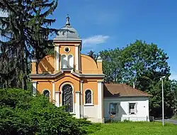 - Kostel Čtrnácti svatých pomocníků byl postaven podle návrhu lounského architekta Ludvíka Naymayera, na kterém se podílel i Pavel Ignác Bayer. Záměrem stavby bylo odvrácení blížící se epidemie moru, k realizaci stavby však došlo až po jejím odeznění v roce 1718. V první polovině 18. století existovala při kostele poustevna, zrušená spolu s ním při náboženských reformách Josefa II. Tehdy bylo odvezeno i jeho původní vybavení. V interiéru se dochovaly nástěnné malby lounského malíře Antonína Smichea. Roku 2010 byl kostel opraven a znovu vysvěcen.