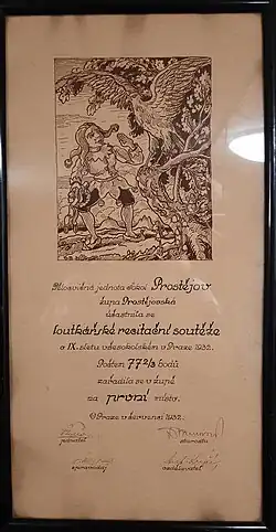 1932 - 1. místo v Loutkařské recitační soutěži o IX. sletu všesokolském v Praze