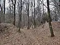 V zalesněném terénu jsou dobře patrné relikty opevnění. Hlavní část hradiště, akropole, je obehnána dvěma prstenci hliněných valů o maximálním průměru 150 metrů[2], vyztužených dřevěnými konstrukcemi. Dvě brány, procházející těmito valy, jsou otočeny na západ a na východ, a chráněny přídavnými valy. Akropole je dále chráněna dvěma příkopy. První, hluboký místy až šest metrů, je mezi oběma valy, druhý, mělčí, okolo vnějšího valu. Na východ od akropole se nalézá podhradí chráněné hliněným valem a příkopem.