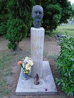 Bysta a náhrobek Ludvíka Kuby na hřbitově v Poděbradech.