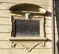 Slavnostní odhalení pamětní desky, kterou věnovala Měšťanská beseda ve Vršovicích, se konalo 30. května 1887. (V té době již byl hřbitov u kostela zrušen.) Protože v době slavnosti byl zákaz průvodů, museli se zástupci spolků a okolních obcí seřadit až na místní školní zahradě a odtud dojít společně ke kostelu; jejich příchod policie zaznamenávala. Hlavním řečníkem byl Josef Václav Frič, přítomna byla i dcera Jindřiška Slavínská. Slavnost proběhla v českém vlasteneckém duchu, oceněno bylo zejména to, že přes německý původ byl Ludvík Rittersberg významným českým vlastencem.[5]