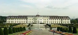 V letech 1709–1733 si zde Eberhard Ludwig, vévoda Württemberský dal na zelené louce postavit největší barokní stavební zámecký komplex v Německu, sestávající ze 16 staveb a česky nesprávně nazývaný Palác Ludwigsburg. Při něm se začala rozrůstat městská zástavba, pro jejíž rozvoj kníže obyvatelům zajistil několikaletou úlevu od daní, bezplatný dovoz stavebního materiálu, bezcelní dovoz zboží a náboženskou svobodu.