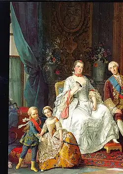 - Isabela Parmská (31. prosince 1741 – 27. listopadu 1763), ⚭ 1760 Josef II. (13. března 1741 – 20. února 1790), arcivévoda rakouský, císař Svaté říše římské, král český, uherský a chorvatský a markrabě moravský
