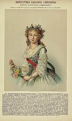 ![]() ruská imperátorka Jelizaveta Alexejevna na portrétu z roku 1805 (autor je Jean-Laurent Mosnier) | |