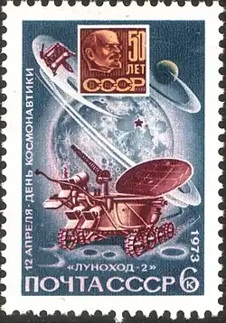 Lunochod 2 byl obdobou Lunochodu 1. Hmotnost 756 kg, délka 2258 cm, osmikolové vozítko ovládané pokyny ze Země.