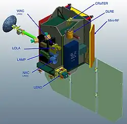 | Nese přístroje | Cosmic Ray Telescope for the Effects of Radiation, Diviner Lunar Radiometer Experiment, Lyman-Alpha Mapping Project, Lunar Exploration Neutron Detector, Lunar Orbiter Laser Altimeter, Lunar Reconnaissance Orbiter Camera a Mini-RF |