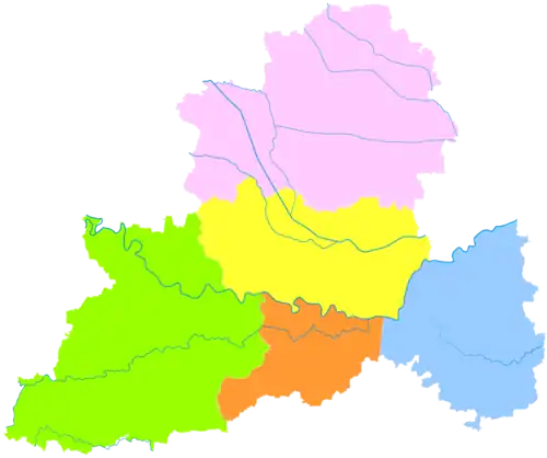 Městská prefektura Luo-che se člení na pět celků okresní úrovně, a sice tři městské obvody a dva okresy.