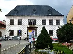 Založení gymnázia (latinské akademie) bylo usneseno roku 1576. Budovu gymnázia nechala v roce 1578 postavit Alena Berková-Meziříčská z Lomnice. Tato jednopatrová budova, obdélníkového půdorysu, ve stylu vlašské renesance je obdobou Palazzo Pompei ve Veroně. Autorem budovy je neznámý italský stavitel. Fasády zdobí ve sgrafitu provedená bosáž.