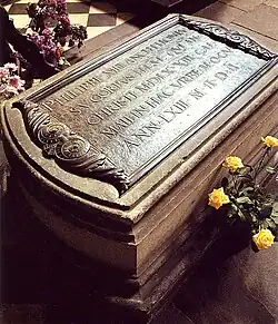 Melanchthonův hrob v zámeckém kostele v Lutherstadtu Wittenbergu