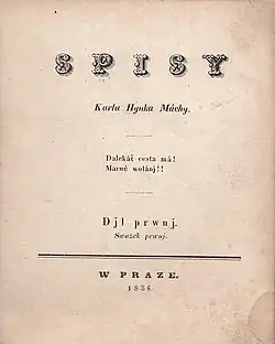 - ↑ KOHOUT, Jiří. Muzeum vystavuje také první vydání Máje. Tachovský deník [online]. 2010-10-21 [cit. 2020-03-27]. Dostupné online.