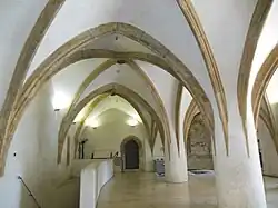 Tento prostor byl užíván především k výčepu piva, případně k provozování další obchodní činnosti či řemesla. Nebyl vytápěn. Fungoval též jako komunikační uzel, z něhož směřovaly schody do (obytného) prvního patra a do sklepa, průjezd či průchod do dvora atp. Byl téměř vždy zaklenut, velmi často s použitím asymetricky umístěného středního sloupu. Od ulice či podloubí jej dělila plná zeď prolomená vstupem a oknem či okny.