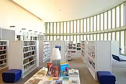 Knihovna s plochou 1050 m2 je přístupná veřejnosti a nabízí tři prostory: