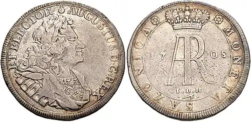 August II. Silný (1694–1733) nechal roku 1702 v lipské mincovně razit tři bankovní tolary s různými mincovními obrazy. Hodnotou odpovídaly polským tolarům raženým podle burgundského rázu, a proto byla jejich hodnota o něco nižší než u tolarů ražených podle rázu říšského. Existují rovněž saské tolary nižší hodnoty, ale i normální polské tolary.[36]