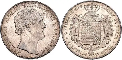 Dne 14. května 1763 představilo Saské kurfiřtství a ernestinská knížectví konvenční mincovní ráz, známý také jako 20-guldenový ráz. Z jemné marky stříbra o hmotnosti ca. 234 g se v Sasku razilo: