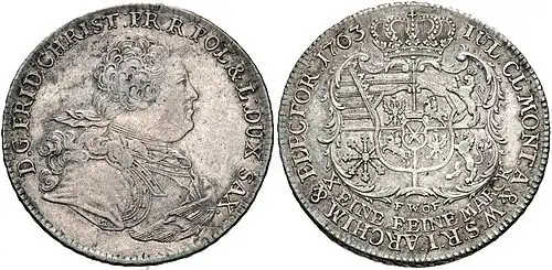 Rozvrácení mincovního systému během sedmileté války (1756–1763) vyžadovalo nezbytnou měnovou reformu. Pruské kontribuce a falšování mincí Fridrichem II. Velikým (1740–1786) jako prostředek financování války totiž vedly k úplnému zhroucení měnového systému v Sasku a Polsku.