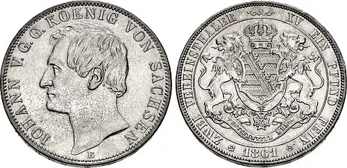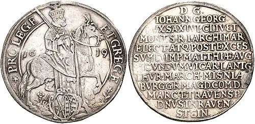 - ↑ ARNOLD, Paul. Die sächsische Talerwährung von 1500 bis 1763. Schweizerische Numismatische Rundschau. 1980, Bd. 59, s. 71. (německy)