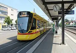 Město je dopravně navázáno na Basilej; téměř 26 km dlouhá tramvajová linka číslo 10, provozovaná dopravním podnikem Baselland Transport AG (BLT), je nejdelší tramvajovou linkou v Basileji a jednou z nejdelších tramvajových linek v Evropě. Prochází také dvěma státy, což je v mezinárodním měřítku rarita, a třemi švýcarskými kantony: Basilej-město, Basilej-venkov a Solothurn. Trať spojuje obce v údolí Leimental (Rodersdorf, Leymen ve Francii, Flüh, Bättwil, Witterswil, Ettingen, Therwil, Oberwil, Bottmingen a Binningen) s městem Basilej a oblastí Birseck – městy Münchenstein, Arlesheim a Dornach. Tramvajová linka 11 BLT jezdí z Aesch přes Reinach, Neu-Münchenstein a nádraží Basel SBB do zastávky St. Louis-Grenze.