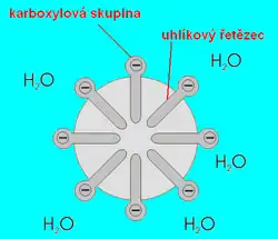 Kromě toho při rozpouštění dochází k částečné hydrolýze solí mastných kyselin