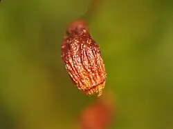 Jeho rodozměna je stejná jako u ostatních mechů. Výtrusy v tobolce jsou 25–50 µm velké.