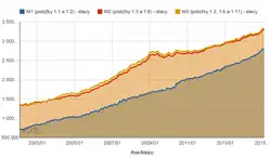 ČNB, vývoj agregátů M1, M2, M3[3]