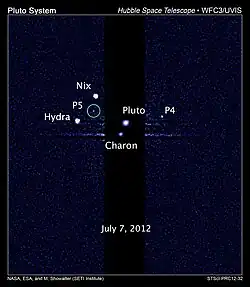 - ↑ Astronomové objevili nový měsíc u Pluta. Podívejte se na snímek z Hubbleova teleskopu. iHNed.cz [online]. 2012-7-12 [cit. 2012-7-13]. Dostupné online.