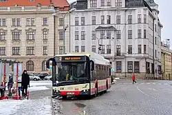 Do zastávky Masarykovo náměstí horní přijel spoj jihlavské linky MHD č. 2.