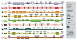 | Linky 301 a 308 jezdí pouze v pracovní dny, linka 311 pouze o víkendu a linky 314–316 jsou pouze účelové spoje.