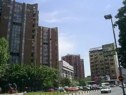 Původní představa dlouhých vysokých bloků s futuristickými základy rozšiřujícími se do stran byla nakonec nahrazena prostými výškovými věžáky.[3] Ty byly nakonec vybudovány ve výškách 24 (šestipodlažní) nebo 45 metrů (dvanáctipodlažní). Výstavba výškových budov v centru města byla prvním krokem k obnově bytového fondu postiženého města; s dalšími bytovými objekty po celé Skopji se pokračovalo až později.