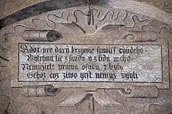 - Chiaroscurová malba, medailon s námětem vanitas (nad schodištěm) na Staré radnici[63]