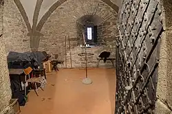 Vstup do komory je chráněn masivními dřevěnými dveřmi, které jsou zavěšeny do ostění ze žulových kvádrů.[6] Dveře jsou rovněž vybaveny speciálním zámkem.[6] Vchod z kůru chrámu však pravděpodobně není původní a vznikl až při spojení věže s kostelem v letech 1715–1720.[6] Původní vchod nikdy nebyl nalezen.[6]