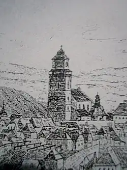 Zmínka o věži pochází z roku 1458, kdy byla výrazně rozšířena a zvýšena pravděpodobně do téměř dnešní podoby.[14][13] Víceméně se jednalo o přestavbu starší věže.[12] Téhož roku vznikla komora vší obce.[12][14]