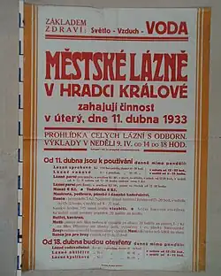 - ↑ a b c d BERNHARDOVÁ, Jaroslava. 80 let Městských lázní v Hradci Králové [online]. Magistrát města Hradec Králové, 2013-04-08, rev. 2013-12-30 [cit. 2014-04-10]. Dostupné v archivu pořízeném dne 2014-03-16.