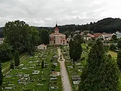 Pohled na hřbitov od kostela Nejsvětější Trojice. -