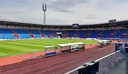Na stadionu od září 2012 probíhala rozsáhlá rekonstrukce sportoviště. Na místě betonových ochozů na východní, severní a jižní straně stadionu byly postaveny nové tribuny, které tak spolu s hlavní tribunou vytváří kolem celého stadionu uzavřený prstenec. Hlavní tribuna byla zachována, avšak prošla také rozsáhlou modernizací, zahrnující nové sedačky, audiotechniku a především zcela nové tiskové centrum, jehož budova se nachází mezi jižní a hlavní tribunou. Dráha a sektory dostaly nový tartanový povrch, byl položen nový trávník na hrací plochu, vybudovány vstupní brány a další objekty.[2]