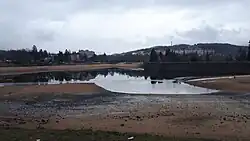Přehrada při kriticky nízké hladině vody v prosinci 2018