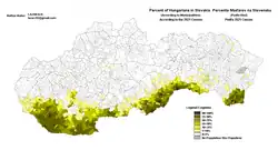 Tabulka zobrazující procentuální zastoupení maďarské populace na Slovensku.[2]