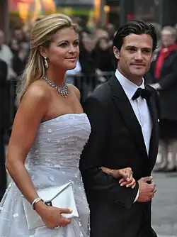 - ↑ Švédská prinezna[sic!] Madeleine si bere bankéře [online]. Týden.cz [cit. 2013-06-08]. Dostupné online.