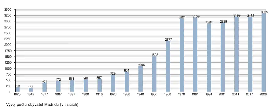 Během první třetiny 20. století se počet obyvatel téměř zdvojnásobil na více než 850 tisíc. Nová předměstí jako Las Ventas, Tetuán či El Carmen se stala domovem nových pracovníků, zatímco Ensanche se stalo čtvrtí střední třídy.[16]